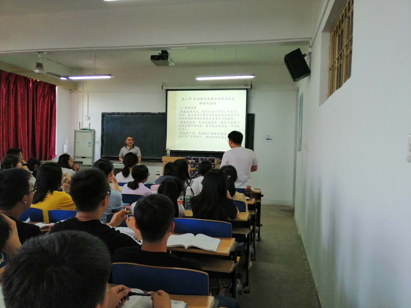 本次课程主要针对“如何提高资金价值”问题,对本专业课《管理会计学》中投资决策的“货币时间价值”等章节进行了深度剖析。其中,重点解析了房地产行业在“中美贸易战”背景下的发展前景以及政府政策调整下的房地产供需矛盾的解决现状。对房地产投资前景进行了客观预测。本专业学生对此次交流课兴趣十足,并聚精会神的倾听记录。