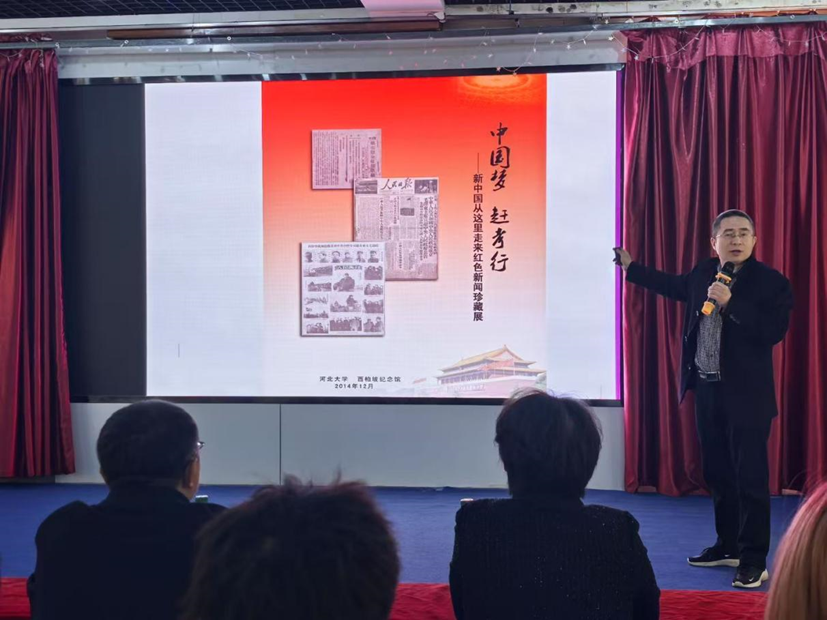 在会展实训室举办纪念“进京赶考”76周年师生同上一堂思政课活动。河北省中共党史人物研究会副会长、中国西柏坡精神研究院理论部主任王律教授应邀出席,学院党委书记董爱民、院长孙振杰、党委副书记王翠改,各支部书记、学生党员和入党积极分子代表100余人参加,活动由孙振杰主持。