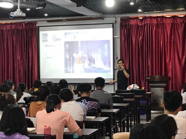 2019年5月17日上午8:00,《旅游景观审美与设计》、《旅游风景美学》等课程邀请康旅集团智力资源中心副主任,兼景观设计事务所所长孙铭就“旅游景观审美与设计”相关内容进行讲座。孙铭主任结合自己丰富的从业经历,结合目前国际上较为突出的设计案例,全面的介绍了旅游景观设计的理念、思路、关注点,重点剖析旅游景观设计中景观空间主题的确定、满足不同人群的景观需求等。整个讲座过程中,融入景观设计师的修养、旅游景观审美等内容,全方位为学生展示旅游景观设计领域的最新动态和需求。