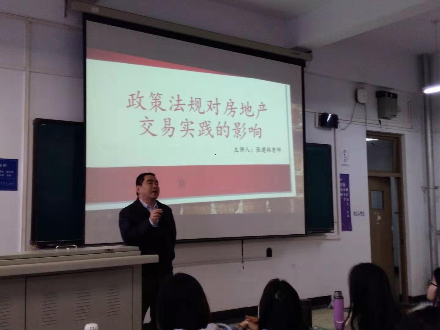 2019年12月17日上午八点,18级房地产专业在北三教A408教室举行了旅想课堂活动,此次活动由王丽丽老师组织,张建林老师进行讲解与分享。张建林老师首先就政策法规对房地产交易实践的影响谈了自己的观点,并结合自身多年从事房地产租赁、转让、销售等实践活动的具体案例,提出要在全面理解政策导向的前提下,客观分析产业发展阶段,针对不同客群的实际情况与需求,采取不同的房地产营销策略和谈判技巧。此外,张老师还对学生就业规划、考研等方面提出了中肯而具体的建议。课上同学们认真听讲,积极提问,气氛热烈。通过张老师的分享,同学们不仅增强了对房地产行业发展的信心,而且还对个人的未来职业发展充满期望。