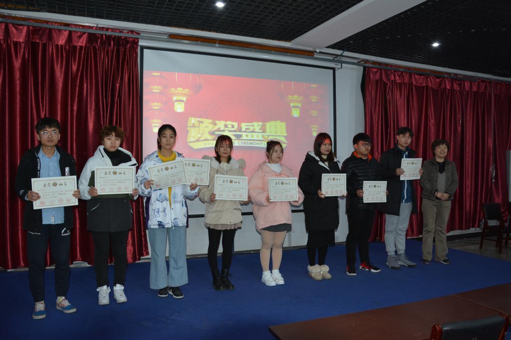 在会展实训室召开金秋银杏节表彰大会。av影片