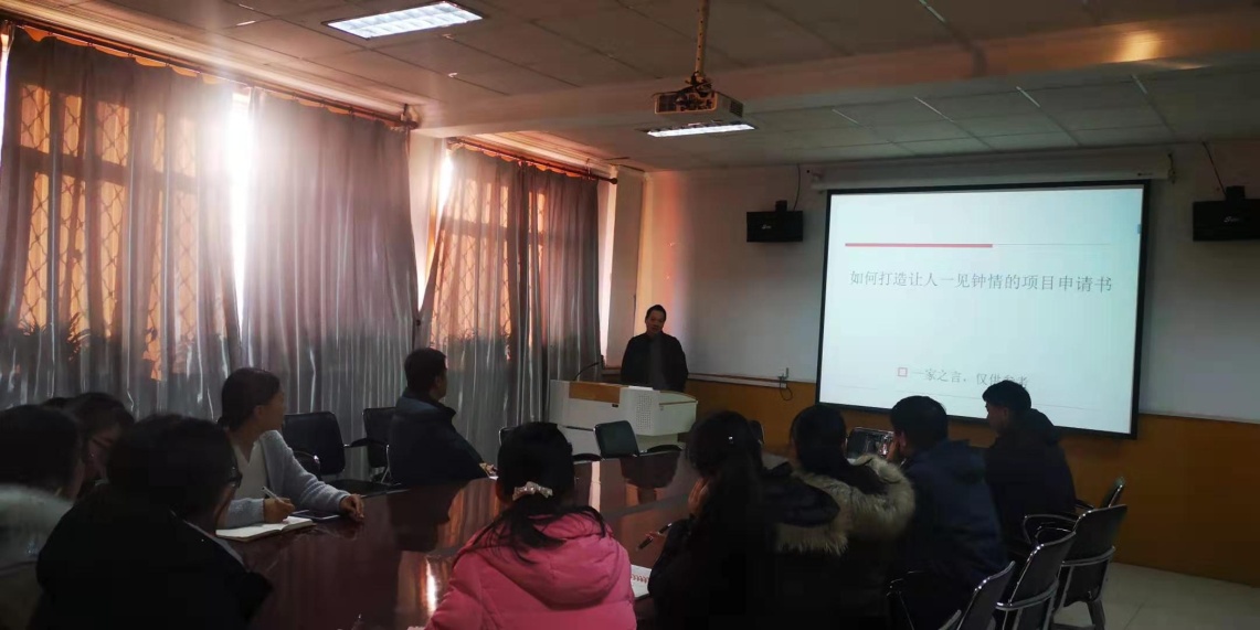 杨在军教授首先以“如何打造让人一见钟情的项目申报书”为题,向大家讲解国家级项目申报应注意的事项,并分别从申请者和评审者的角度从选题、研究内容、思路方法、创新之处、预期成果、研究基础和参考文献等具体的几方面,全面讲解了如何写出超让人一见钟情的申请书,最后提出理想申请书应该是达到“各种口味专家一口气读完,别人说好才是真的好”的要求。其次,杨教授还针对参会教师的申报书进行了针对性的辅导和修改。