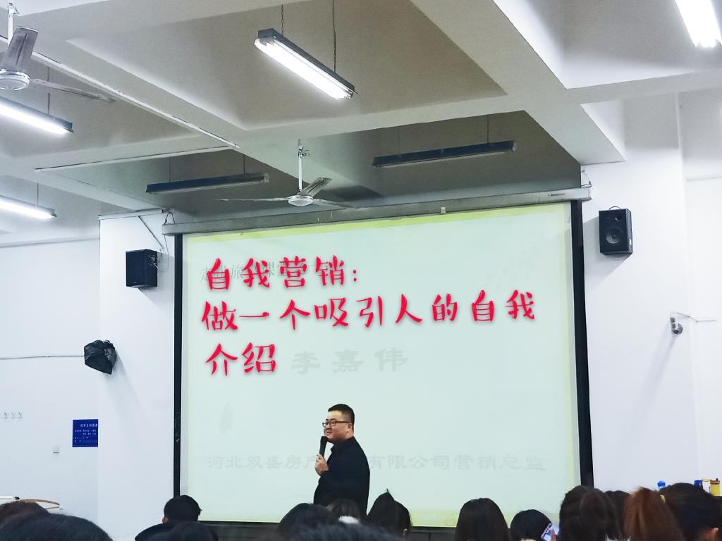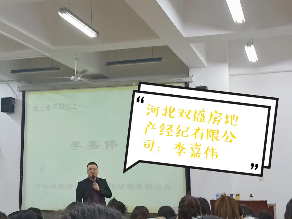 邀请河北双盛房产经纪有限公司营销总监李嘉伟于北五教二教室做了房地产经营交流会。本次课程由av影片