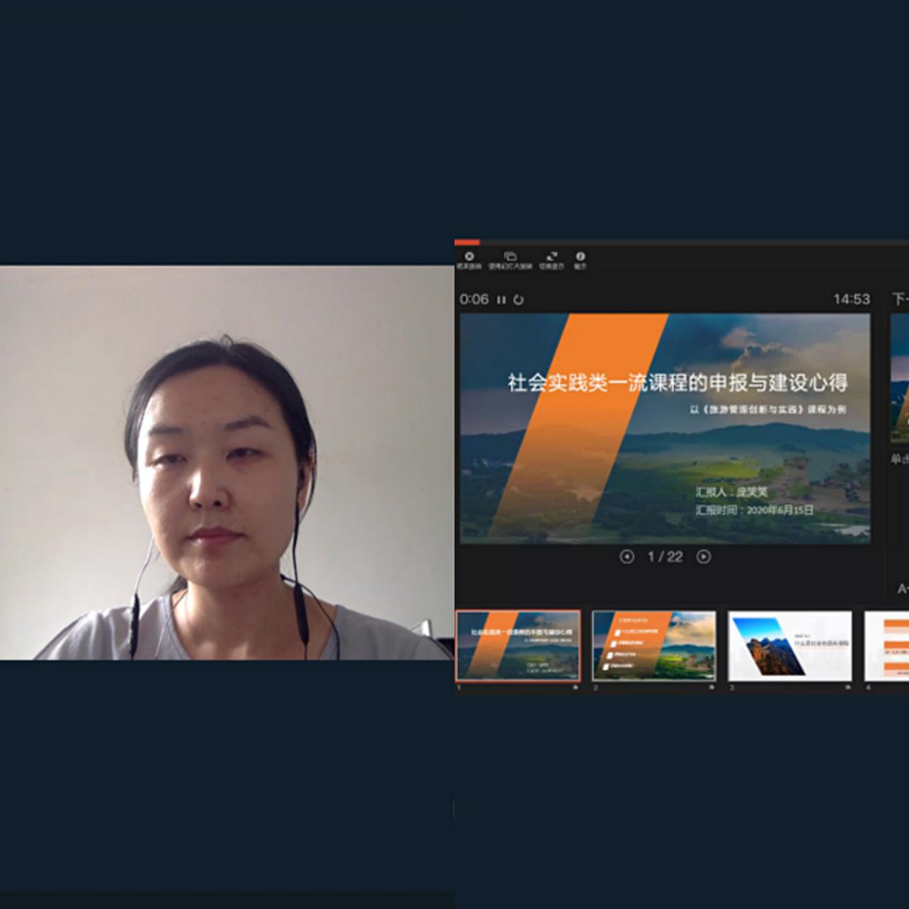 旅游管理系主任庞笑笑博士作“社会实践类一流课程的申报与建设心得”交流分享,活动由教务办公室主任谷沣主持,来自法学院、计算机中心、马克思主义学院、商学院、外语教学部、艺术学院等单位的89名教师参加了本次沙龙。