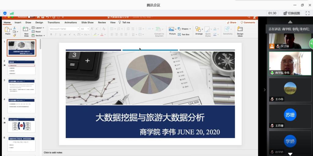 2020年6月20日上午9时,av影片 邀请商学院李伟博士作题为《大数据挖掘与旅游大数据分析》学术讲座。讲座由副院长吴士锋主持,av影片 学术科研骨干教师及研究生近30人参加。