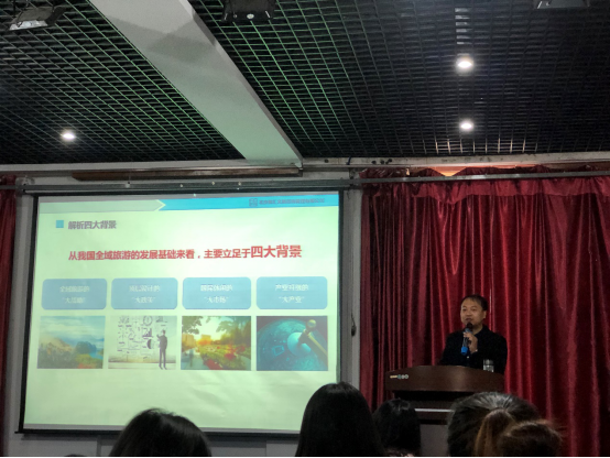 分享会以“文旅发展需闻鸡起舞,逢时弄潮”为主题,杨院长结合多年文旅行业从业经验,带领同学们到行业发展最前沿。分享会由全域旅游最新解读、案例分析和文旅行业发展前瞻三部分构成,他首先从政策层面为大家解读全域旅游最新发展情况与要求;其次,详细介绍丁村规划案例,为大家展示文化在旅游规划中的应用;最后,他鼓励同学们好好学习,多关注行业发展,尽早确定自己的目标并为之而努力。