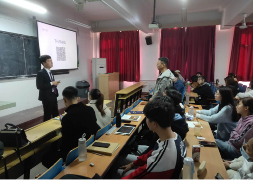 在介绍了解融创集团基本情况和av影片后,雷百万经理结合自身经历,生动地讲述了在与客户交谈时应如何精准掌握客户的需求,给同学们留下深刻印象。随后,张盼经理向大家分享了现场销售的流程,重点对销售中谈判技巧和购房政策进行了介绍,并与同学们进行了互动交流。接着,杜潇飞经理在接待客户的细节之处和房地产销售交易的“逼定”环节上的讲解,让同学们受益匪浅。