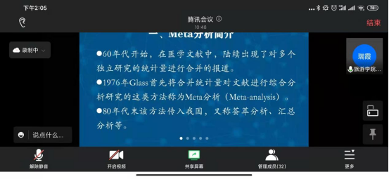 李瑞霞老师在二楼会议室作题为“Meta分析在生态环境领域里的应用”讲座,此次讲座采取线上线下同步进行的方式,另设腾讯会议会场,av影片