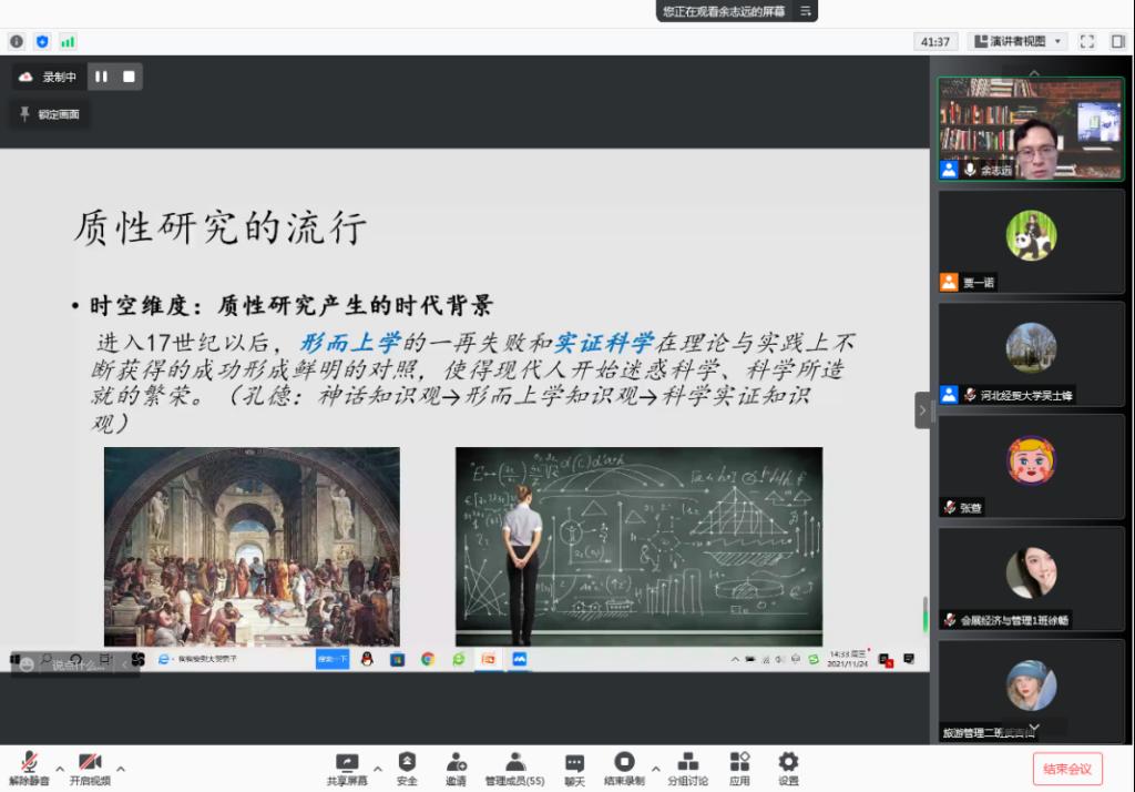 邀请东北财经大学旅游与酒店管理学院余志远副教授通过腾讯会议进行了题为“质性研究方法在旅游研究中的应用”学术讲座。讲座由av影片