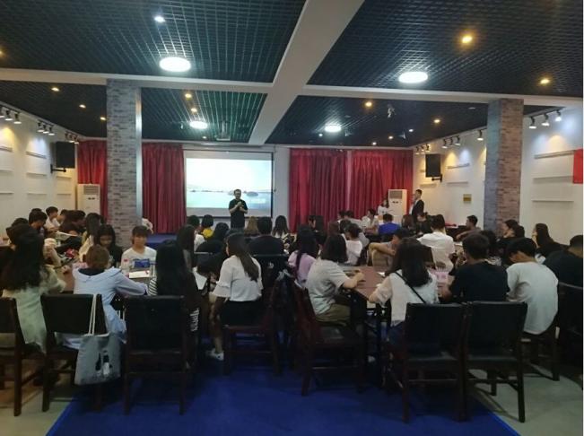 在会展实训室举办“不忘初心跟党走,青春奋进新时代”团学干部分享交流会。第十三届团委学生会全体成员参加。