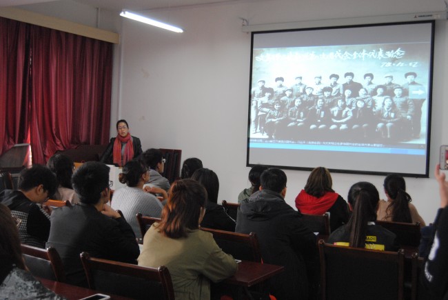张彦彦从习近平总书记七年知青岁月的青春故事展开讲述,通过视频播放、ppt展示等方式带领与会人员了解习近平总书记知青时期的艰苦生活和成长历程,勉励同学们以习近平总书记为榜样,坚定理想信念,校正人生坐标原点,砥砺品德修养,争做时代青年的楷模;要发扬艰苦奋斗精神,敢于吃苦,争做干事创业的先锋;更要创新学习方式,提高业务能力,争做学习的榜样。