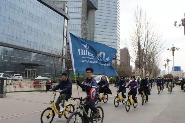 组织酒店管理专业的50名同学参加了由石家庄希尔顿酒店组织的“地球一小时”绿色骑行活动。该活动是由WWF(世界自然资金会)发起的全球最大应对气候变化的公益行动。