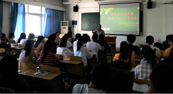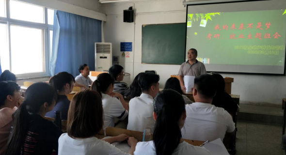 就业指导负责人张建林老师在一教210教室开展了以“我的未来不是梦”为主题的考研就业分享会,辅导员袁志超老师出席并主持会议。