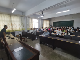 副教授李同法主讲,会展酒店学生党支部、地产营销学生党支部42名预备党员听取了报告。