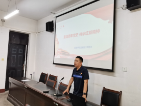 接着,他从让“红船精神”绽放新的时代光芒方面进一步向与会人员讲解,他强调回顾走过的路、不忘来时的路,归根结底是为了继续走好前行的路。“红船精神”是中国革命精神之源,具有超越时空的永恒价值。在中国共产党成立100周年之际,我们要大力发扬红色传统、传承红色基因,不断赋予“红船精神”新的时代内涵,让其绽放新的时代光芒,为奋进新征程提供强大精神动力。我们广大党员和预备党员同志更要把“红船精神”牢记于心,付诸于行。