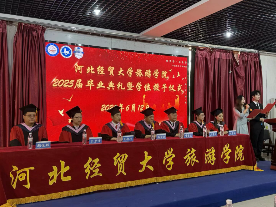党委书记董爱民、院长孙振杰、学院党委副书记王翠改以及各教研室主任、科级干部、任课老师和毕业班辅导员们参加此次典礼,此次毕业典礼还特别邀请了优秀校友,河北旅投国际酒店管理集团有限公司副总经理闫晓霞,与2025届毕业生共同见证这一庄严时刻。