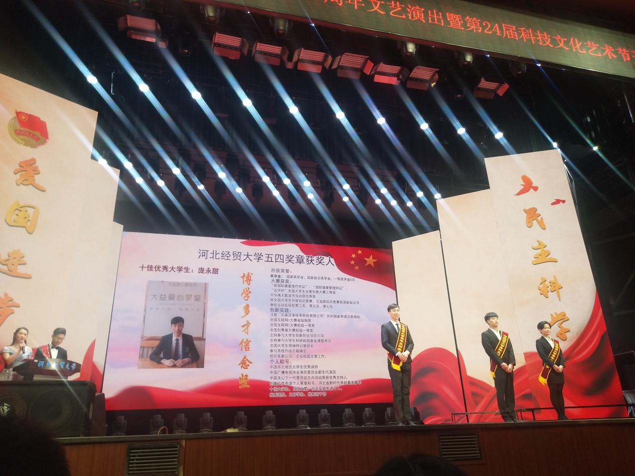 十佳大学生荣誉称号的庞永甜。