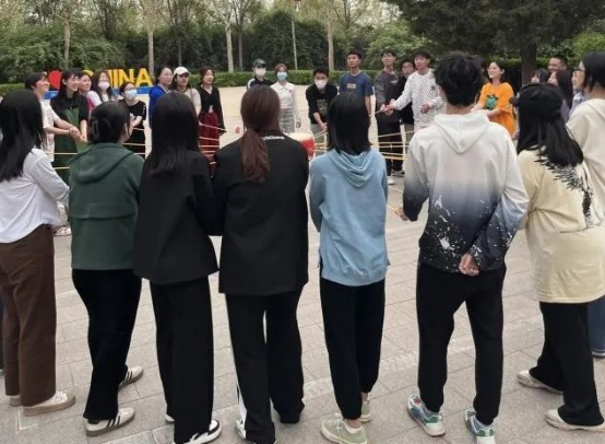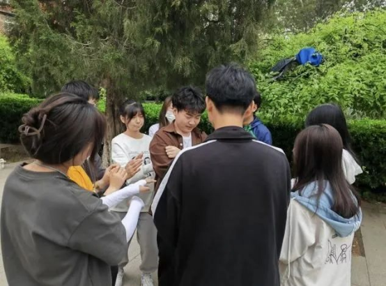 《疾风劲草》知信任活动:由一个同学站在中心,闭上眼睛向四周蒙眼摇晃,每个学生体验一次做“草”的感觉。各个小组同学间通过活动感受到了彼此信任的重要性,体会信任在团队中如何建立。班级通过此活动建立了彼此互信、增强了班级凝聚力。