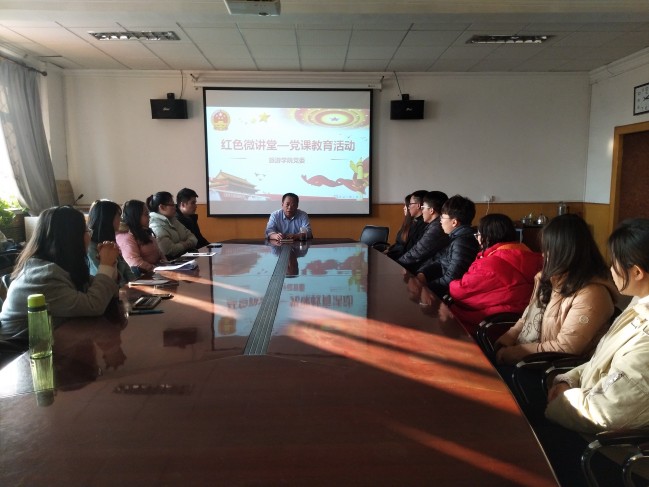 于二楼会议室召开第9期红色微讲堂,本期微讲堂以党委书记专题党课教育为主题,学院党委书记刘风长主讲,学院下半年新发展的预备党员参加了学习。