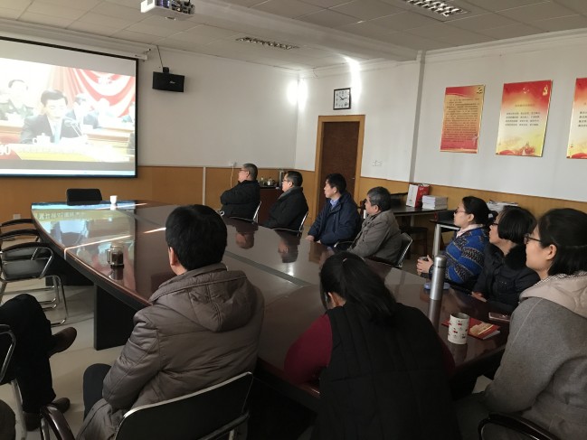 上午9时50分,学院全体党政人员、全体学生党员准时在会议室集合,等待大会召开。10时,大会正式召开,会议现场热烈激动,与会同志认真收看,频频报以热烈掌声。