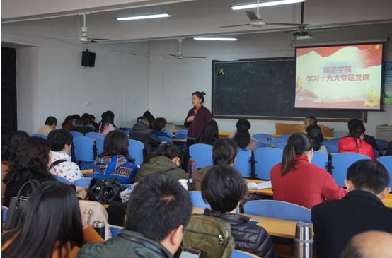 在206教室举办学习十九大精神专题党课,副院长祁红梅作了题为《学习贯彻十九大精神 全面推动学院学科发展》的专题报告。党课由学院党委书记刘风长主持,学院全体教师参加。