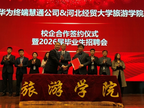 2025年10月13日下午av影片 与华为终端慧通公司在大学生活动中心3号厅举行校企合作签约仪式暨2026届毕业生招聘会。河北终端人力资源总监王永洪、政企总经理关勇、人力资源经理刘晗,av影片 就业指导服务中心副主任贾鹏,av影片 党委书记董爱民、院长孙振杰、副院长吴士锋、副院长侯聪,全体教职工及2026届全体毕业生共计300余人参加会议由学院党委副书记王翠改主持。