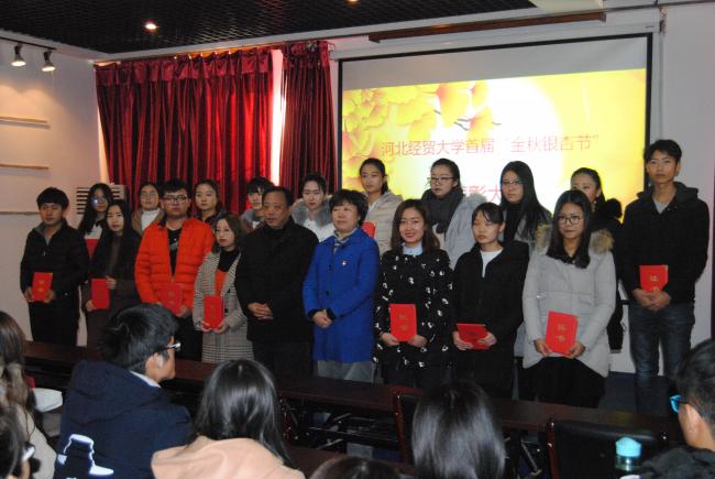 在会议报告厅举办了2017“金秋银杏节”表彰大会,会议由实训中心主任张丽荣主持,学院党委书记刘风长,院长高宏及会展教研室主任刘颖出席会议。17级会展专业学生及获奖学生代表参加了表彰会。