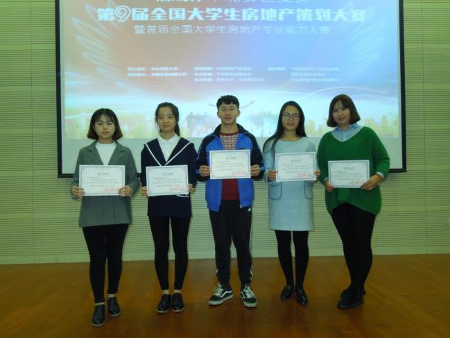 代表队由王锦旺、袁志超老师指导,2015级闫哲杰、李文洋、刘坤、连娟华、蒋镇宇五名同学组成。本次大赛由中国建筑教育协会主办,近150所高校,4000多人,750支队伍参赛,180支队伍晋级复赛。此次大赛,旨在加强“产学研用”四方面的连接与合作,提升同学们对房地产策划的兴趣,培养房地产企业所需创新型、复合型人才,为高校提供教学案例,促进教学改革和企业用人模式创新。
