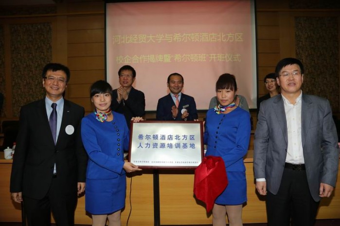 酒店管理实践教育基地”、“希尔顿酒店北方区人力资源培训基地”揭牌。我校还与中国希尔顿酒店北方区建立合作关系,签订校企合作协议,并在酒店管理专业开设“希尔顿班”。