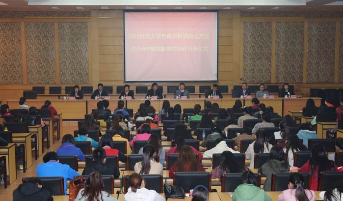 与希尔顿酒店北方区校企合作揭牌暨“希尔顿班”开班仪式在学校会议中心举行。校党委副书记、校长纪良纲,校党委常委、副校长申富平出席,教务处处长李桂琴,石家庄希尔顿酒店、北京机场希尔顿酒店、天津生态城世茂希尔顿酒店等人员及av影片