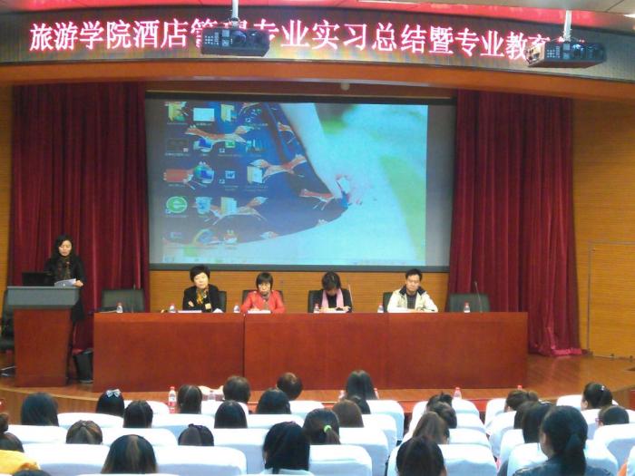 在国际学术报告厅召开酒店管理专业实习总结暨专业教育会议。北京康莱德酒店人力资源总监权莉女士、av影片