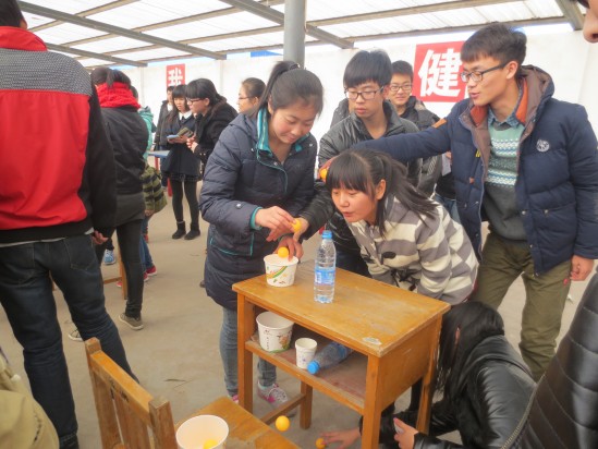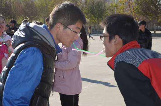 2013年冬季健身月活动的第二项内容,旨在突出活动的趣味性及娱乐性,共设“环环相扣”、“心心相印”、“一吹到底”三个比赛项目,活动既考验了参赛选手的技巧与速度,同时考验了参赛团队的沟通与协作能力。现场氛围轻松且愉快,让同学们充分感受到了健身的快乐。