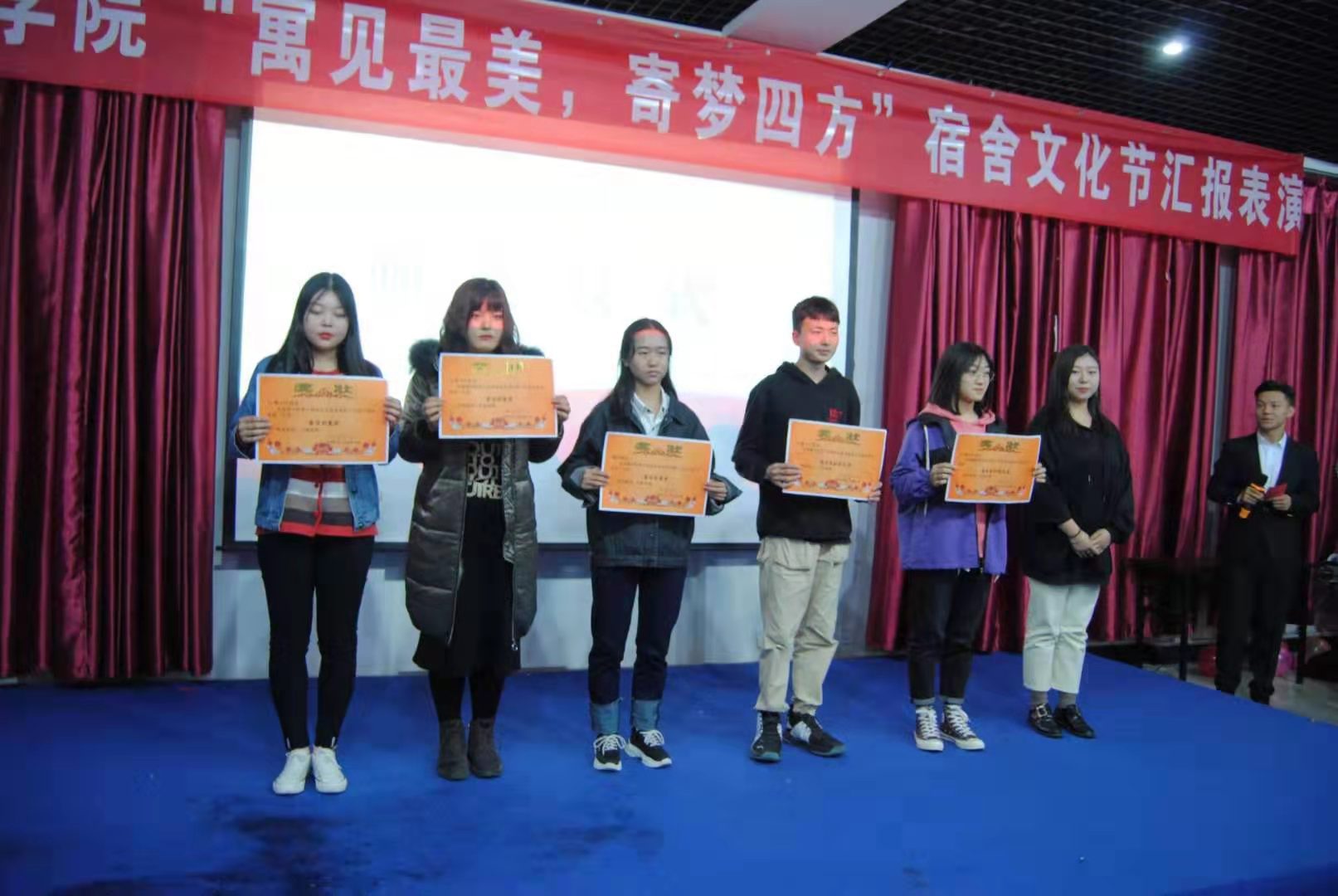 于会展实训室举行了第八届宿舍文化节汇报演出暨颁奖典礼。本次活动有学生会主席团成员出席,学院部分学生代表参加。