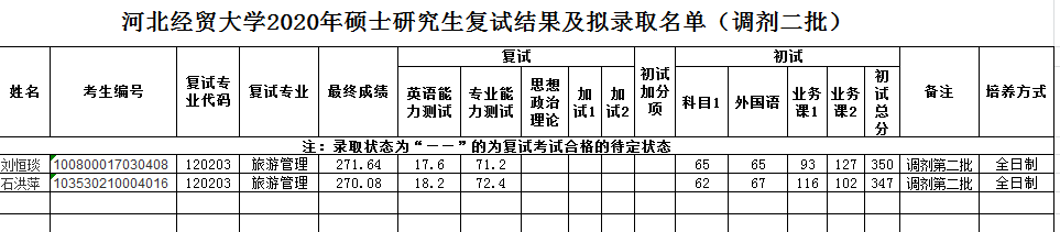 复试结果及拟录取名单(调剂)注:有关事项提示如下