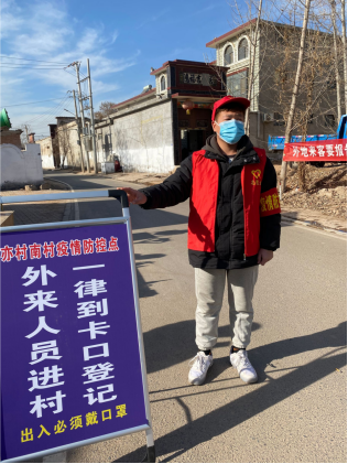 疫情爆发以后,他积极关注疫情趋势,第一时间加入到村志愿队,积极站岗查勤,在每天的疫情防控工作中,他也时刻保障自身安全,每天带好口罩,测量体温,努力践行志愿者精神、恪尽职守,认真完成组织交代的任务,贡献自己的一分力量。作为一名大学生,他觉得为人民服务是自己应该做的,尽可能为群众做一些力所能及的事情,以志愿服务为手段,通过志愿者为他人,为社会带来服务。