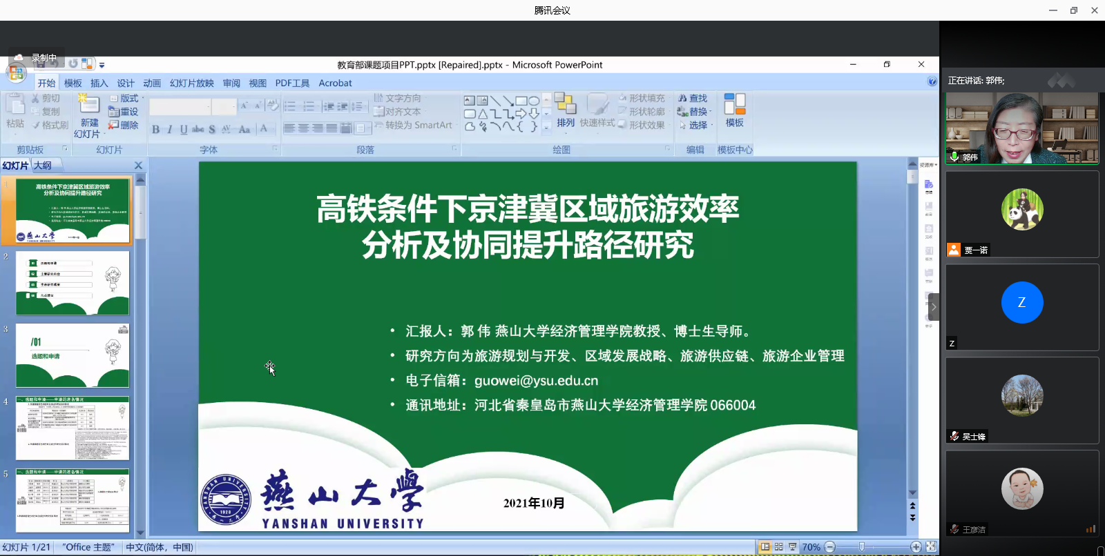 邀请燕山大学经济管理学院教授、博士生导师郭伟通过腾讯会议进行了题为“高铁条件下京津冀区域旅游效率分析及协同提升路径研究”的学术讲座。讲座由av影片