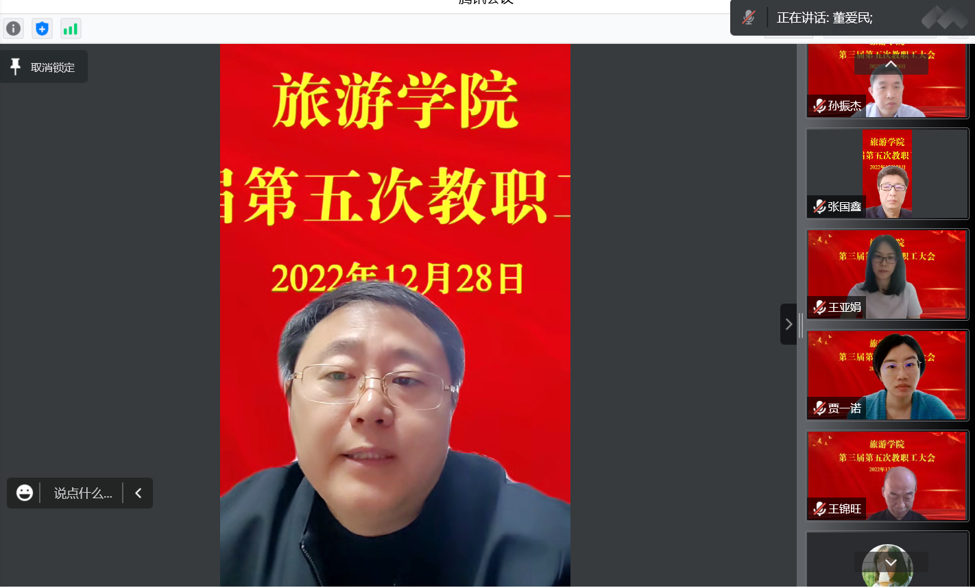 全体教职工参会,会议由学院党委副书记王翠改主持。