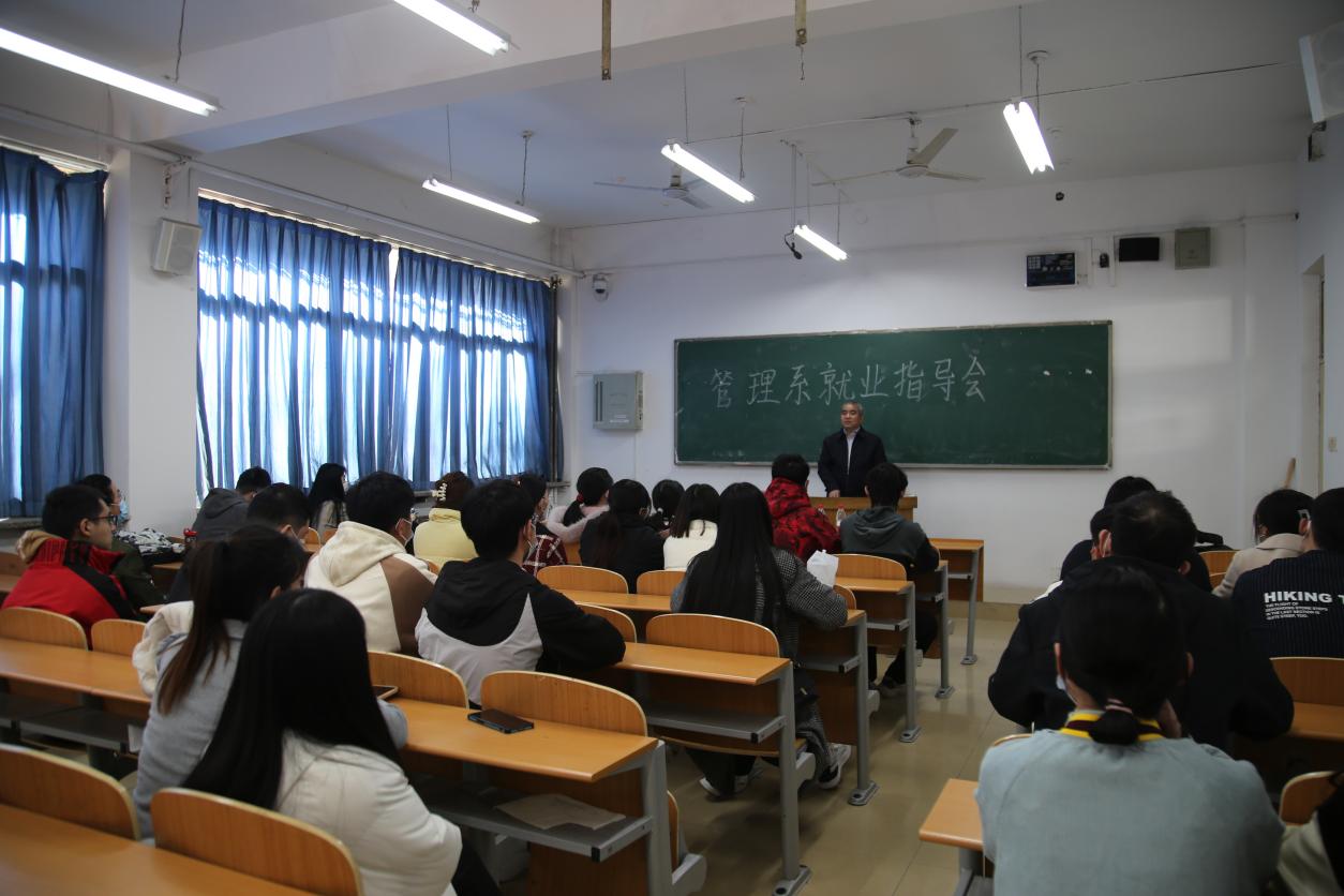 就业负责人张建林做专题辅导。讲座由辅导员郑廷主持,部分2019级管理系学生学生参加。