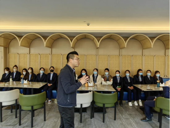 实操体验活动结束后,星程酒店为同学们安排了高管座谈环节。企业班主任张梦经理专程邀请了华住集团石家庄东南区总经理张春雨先生与全体师生进行交流和沟通。张春雨总经理为同学们介绍了华住集团河北区的基本情况、旗下酒店的品牌特质、优秀店长的成长路径、职业发展的素质要求等,并结合同学们提出的问题,寄语同学们在校企合作这个大平台下,要注重理论和实践相结合,善用行动学习法,事前做计划、事后做复盘,切实提升自身的战略规划能力和战术执行能力,为尽快晋升为优秀的酒店职业经理人奠定良好的专业能力和职业素养。