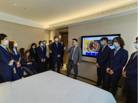 参观过程中尤为吸引同学们的是华住集团的数字化技术应用,如30秒自助入住机、智能送物机器人、客房智能语音管家、智能洁具等。通过实地参观,同学们对于酒店的场景设计、产品设计以及数字化运营管理等方面有了更加直观的了解和认知。