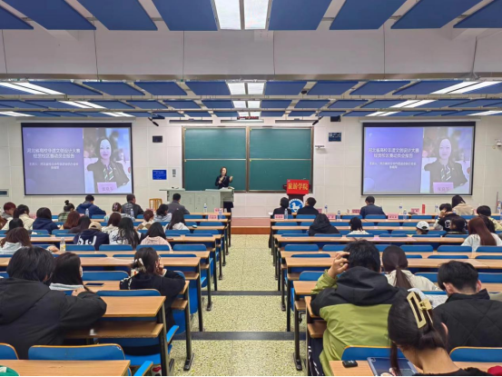 河北省校企合作促进会执行会长、校友张晓军女士作河北省高校非遗文创设计大赛经贸校区赛动员讲话,她指出,大学是人生中最难忘的经历,每一次做的活动和分享课,都是一次精神的传承;文创产品是促进文化传承和企业发展的具体表现,大赛的本身就是创新,希望同学们刻苦学习、抓住机会、积极参与、团结协作、勇于创新,努力书写自己丰富精彩的大学生活。