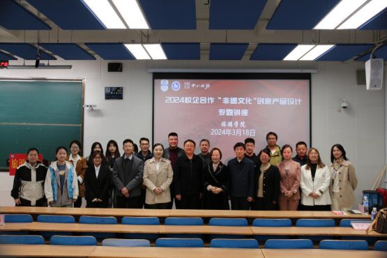党委书记董爱民代表学院对各位企业家、校友百忙之中莅临指导表示欢迎和感谢,他指出,非物质文化遗产,是民族智慧的结晶,是历史长河中沉淀下来的宝贵财富,如何将非遗文化进行创造性转化和创新性发展,成为了我们这一代人不可推卸的责任。希望通过本次讲座,激发广大师生的创作热情,创造出既有深度又有温度的文创作品,让传统文化在现代生活中焕发新的活力。