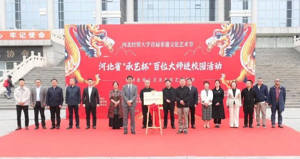 为全面贯彻习近平总书记对非遗文化保护工作的重要指示精神,传承中华优秀传统工艺美术,4月19日上午,我校首届非遗文化艺术节、河北省“承艺杯”百位大师进校园活动暨河北省工艺美术技艺大奖赛开幕式在图书馆前广场隆重举行。省市场监督管理局一级巡视员庞彦须出席并宣布活动开幕,河北省人大财经委原主任杜书箱,中国工艺美术协会原副会长李平思出席,校党委常委、副校长李桂君致辞。