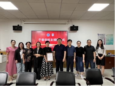 捐赠电子大屏1台,学院党委书记董爱民为于春华校友颁发捐赠证书。