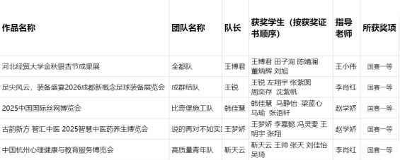 通过本次大赛不仅取得了优异的比赛成绩,还极大地拓展了同学们的专业视野,激励了学生创新创业的热情、促进了我校师生与其他高校和企业的互动交流,极大地提升了会展专业师生的信心,更加坚定了会展专业继续深化教学改革、提升教学质量的决心。