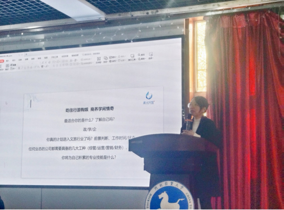2024年12月9日下午,av影片 邀请成都柔水文旅旅游发展有限公司鹿尔花园品牌营销总监杨艳翎女士为旅游管理专业的学生作报告。她的题目是《学姐回家——20年文旅打工人的经验分享》。杨艳翎是av影片 2006届旅游管理专业毕业生,深耕文旅行业20年,具备丰富的文旅行业经验和敏锐的市场洞察力。