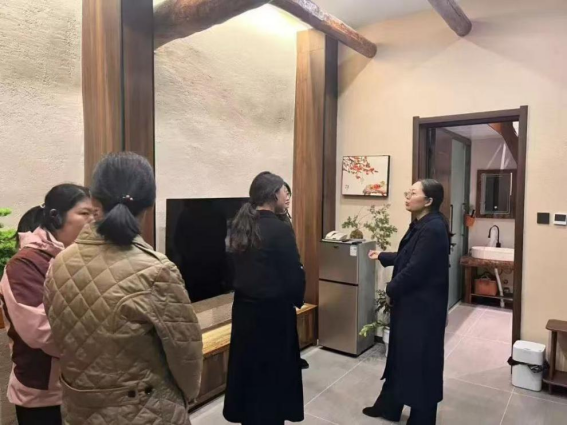 培训期间,张乐博士与贾一诺博士还受邀前往赞皇县三六沟栗椿别苑民宿进行考察,实地了解民宿设计与运营情况与民宿主理人进行了深入交流与实践分享,对民宿运营中遇到的一些问题进行现场指导