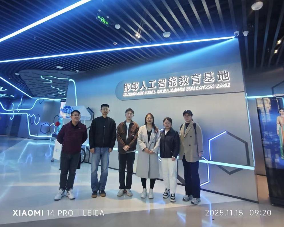 调研首站是邯郸人工智能教育基地。在基地负责人的引导下,教师们参观了人工智能技术展示中心、研学实践课堂及创新应用场景体验区,详细了解了AI技术在政务服务、互动消费、教学辅助等方面的落地应用。从智能机器人互动教学到虚拟现实沉浸式学习场景,基地以前沿技术融合教育实践的模式,引发了教师们的深入思考。