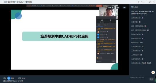 张经理从多规合一做规划、规划理念、软件的操作等方面对旅游规划和制图相关内容进行了系统的阐述,重点介绍了软件操作过程中常见的问题和技巧。之后,学生就《旅游规划制图与设计》课程学习过程中遇到的问题与张经理进行了沟通和探讨。
