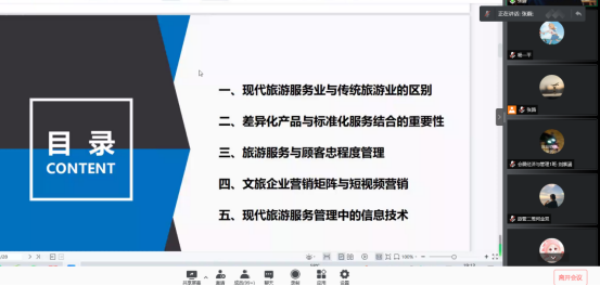 旅享导师团的张蔚老师,通过腾讯会议进行了题为“旅游服务管理与营销”的线上讲座。本次讲座由av影片